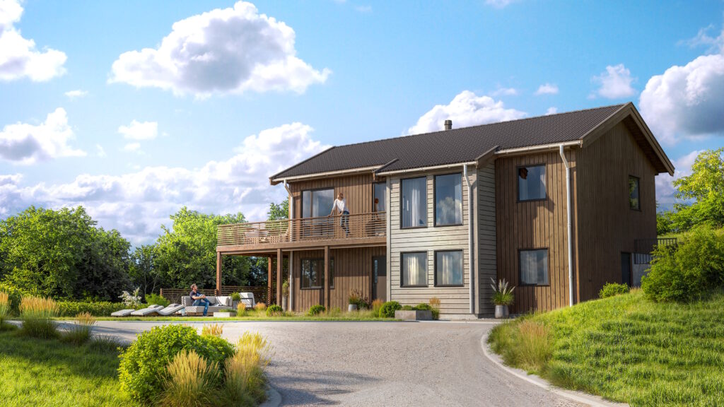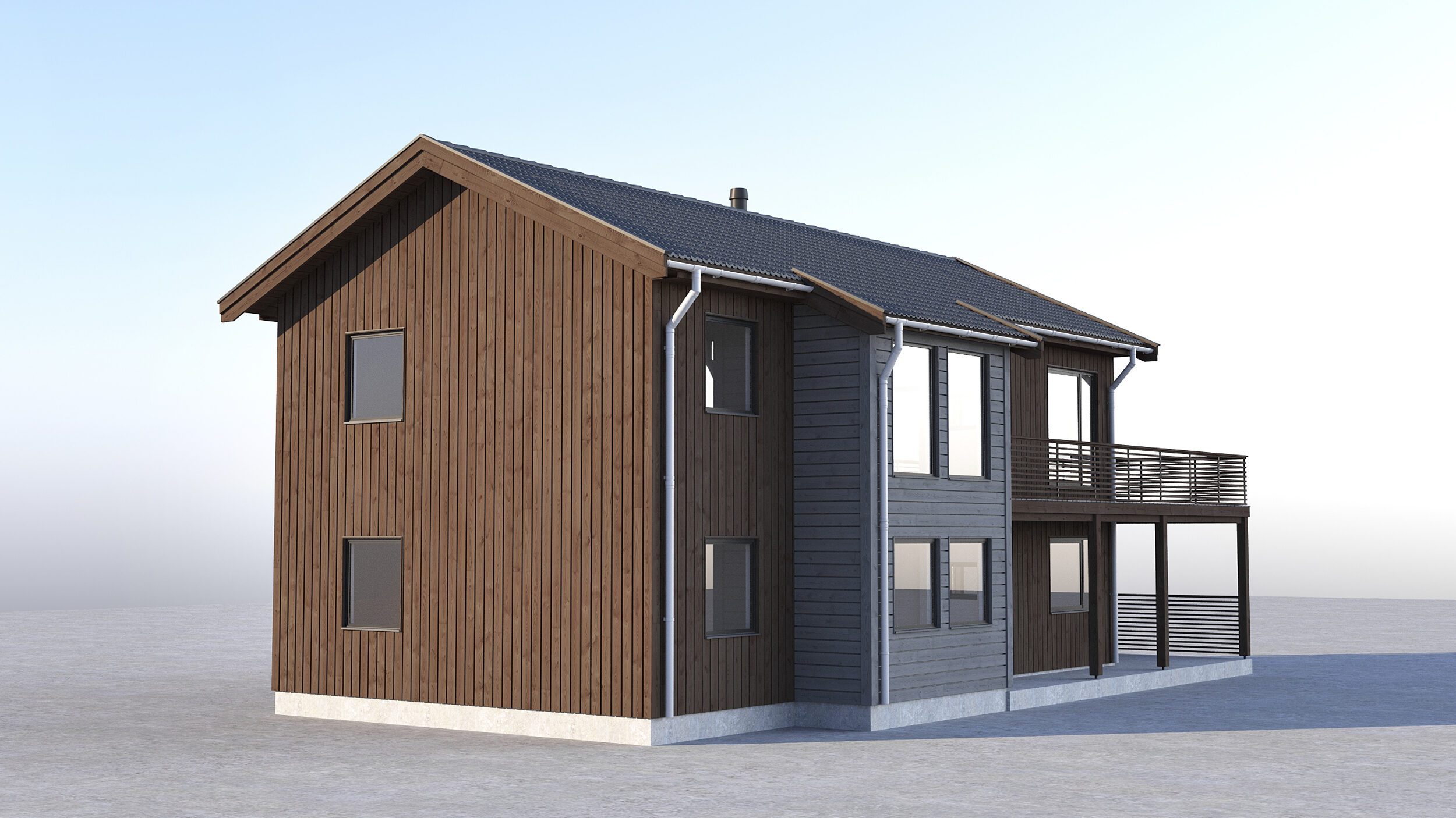 Astro er et stilig hus med pulttak og et moderne uttrykk. Huset er innholdsrikt med fire soverom i første etasje, i tillegg til romslig hall, bad, stor bod og teknisk rom. I andre etasje er det vaskerom og wc, og et stort og flott stue- og kjøkkenområde som gir en åpen og luftig romfølelse.