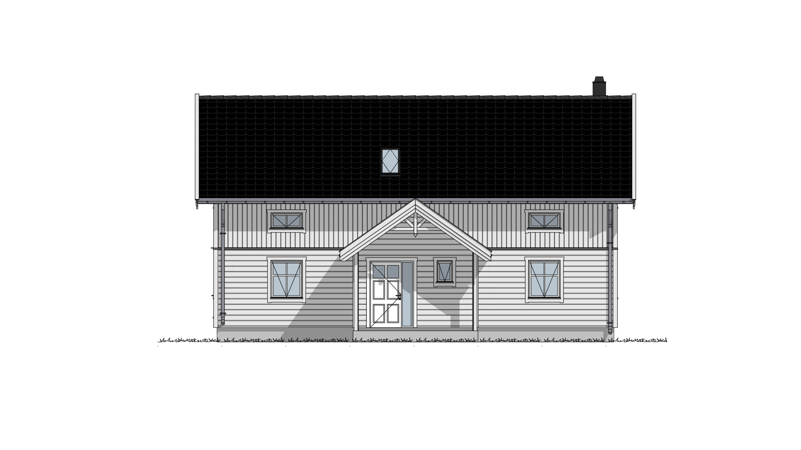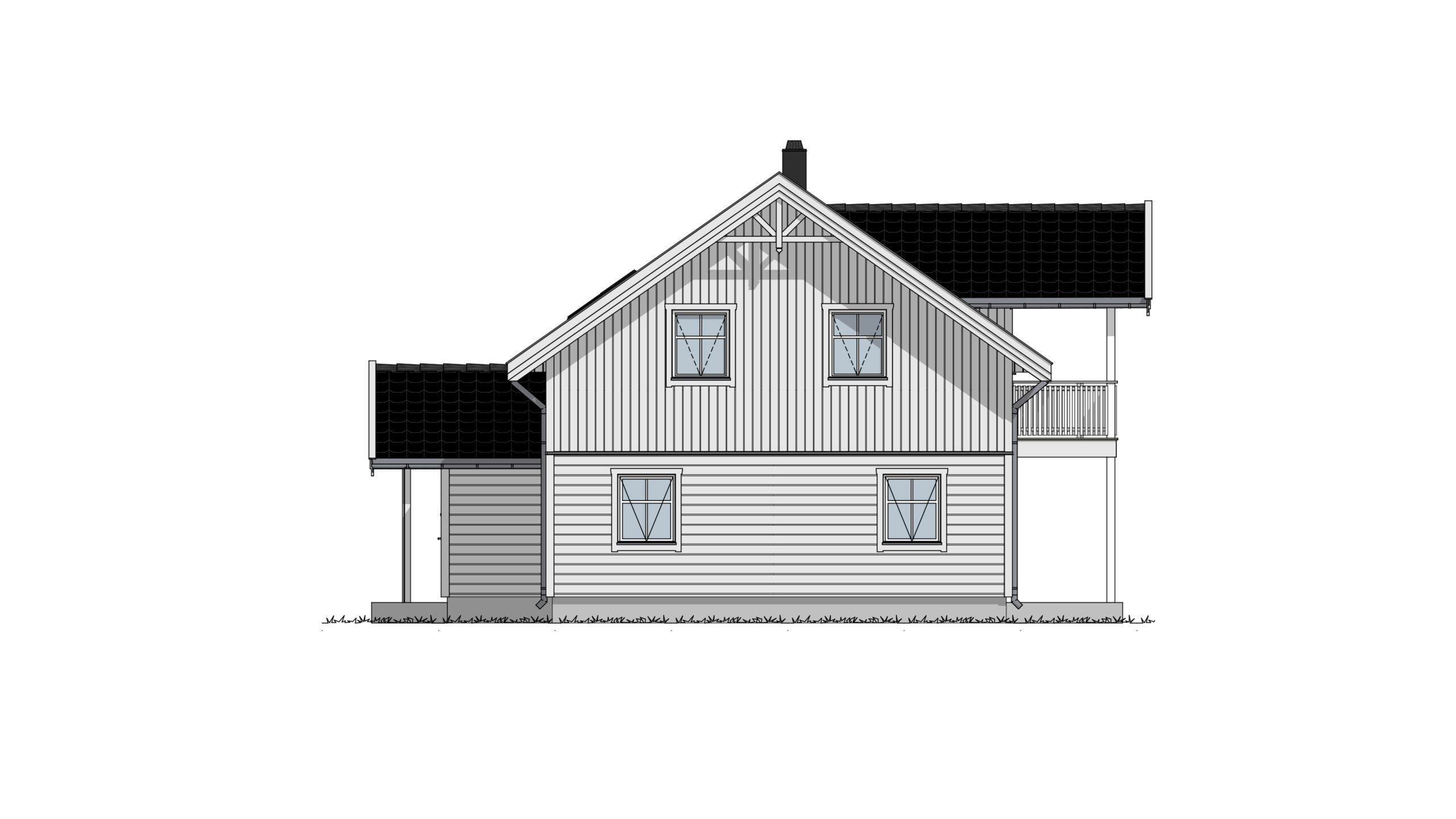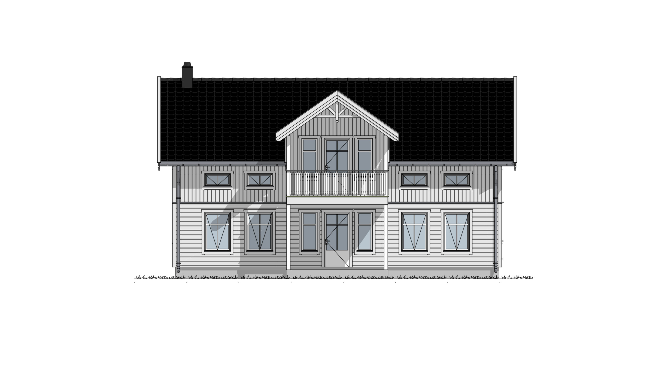 Haugfoss er et vakkert hus med god plass. Eneboligen har et klassisk uttrykk med sprosser på vinduene og dekorative mønekryss. Lave vinduer i kneveggene i andre etasje bidrar til å gi huset en vakker fasade.