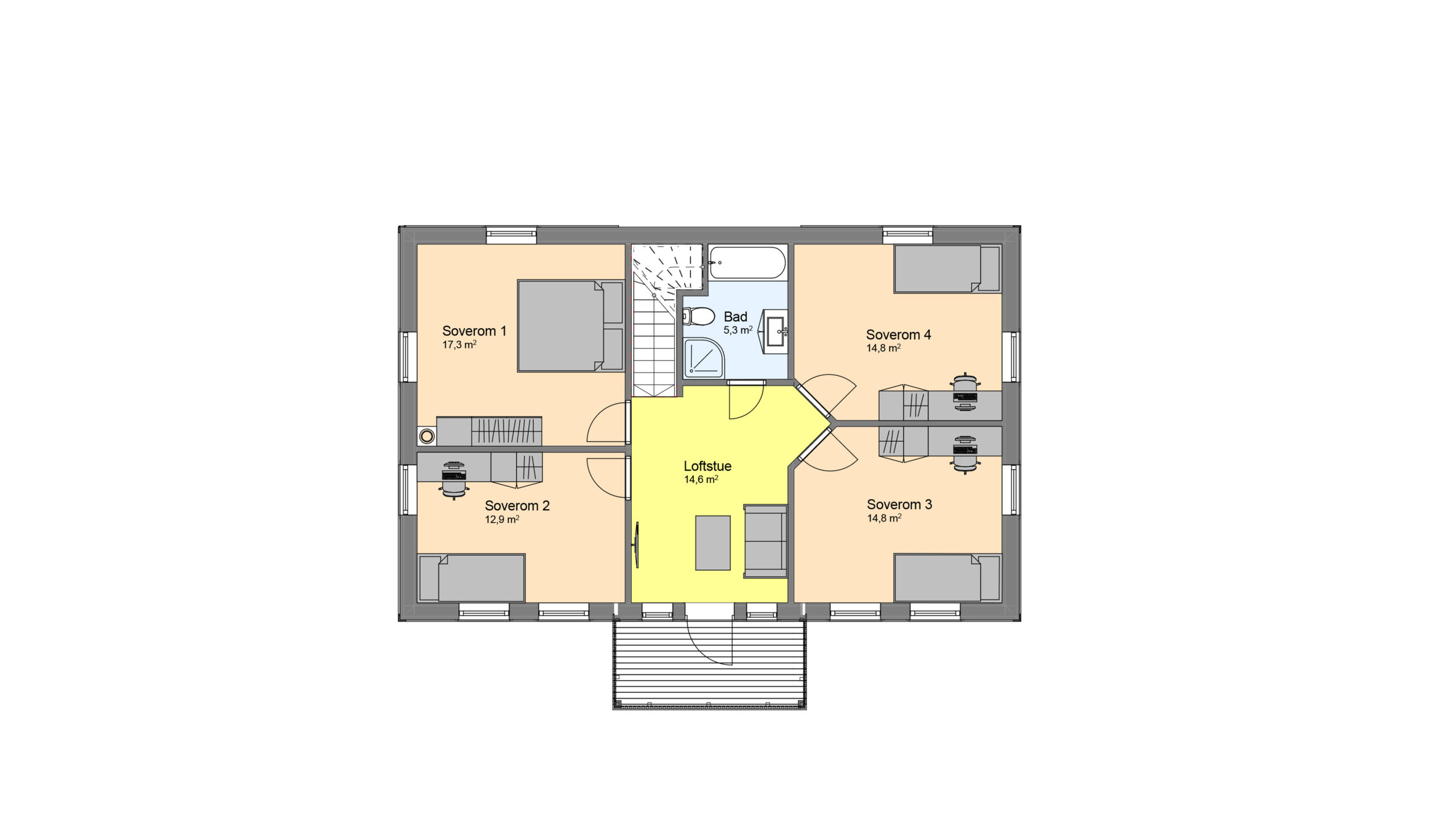 I andre etasje finnes fire gode soverom, en praktisk loftstue, og et hyggelig bad med badekar og takvindu. En flott bolig med plass for hele familien.