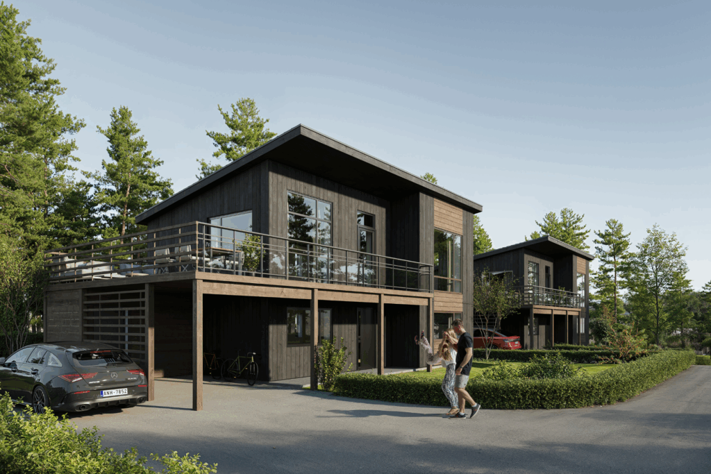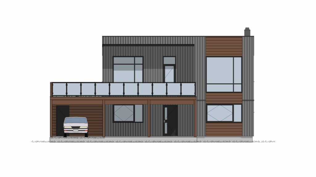 Neptun er et funksjonelt og arealeffektivt hus med moderne linjer. Det har en praktisk carport som lar bilen få ly for vær og vind, og samtidig fungerer som gulv for terrassen i annen etasje.