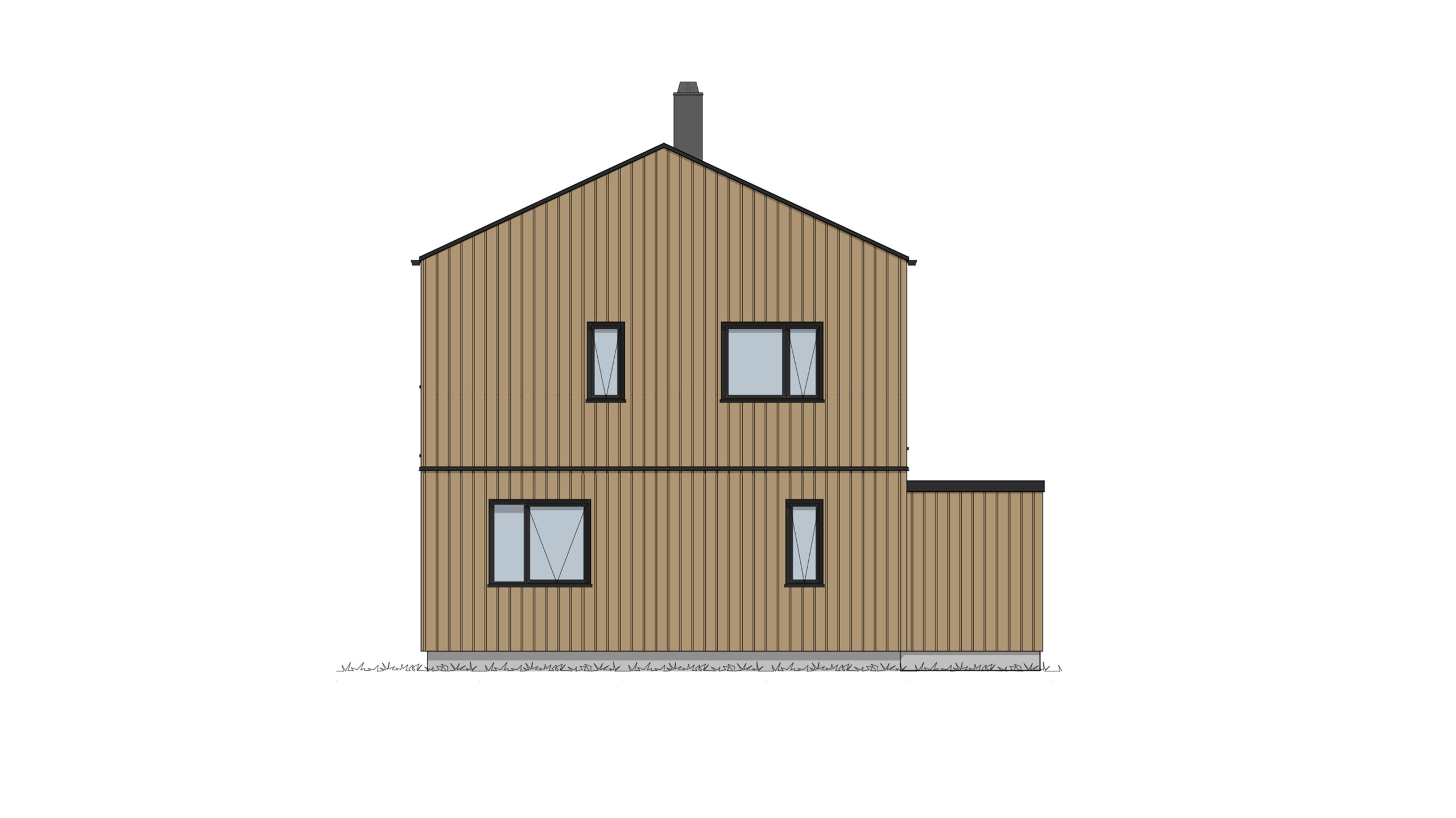 Økosmart 5 er et stilig hus i to etasjer som har et lite fotavtrykk, men likevel inneholder alt en familie trenger! I første etasje er de tre soverommene samlet, i tillegg til bad og gang med trapp. Hovedsoverommet har utgang til uteplass.