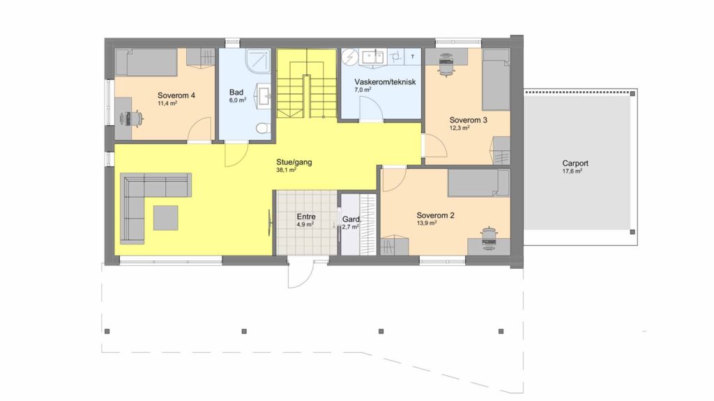 Graden av ferdigstillelse gjenspeiler seg i prisen. Perfekt for deg som vil gjøre egeninnsats, eller bruke egne håndverkere.