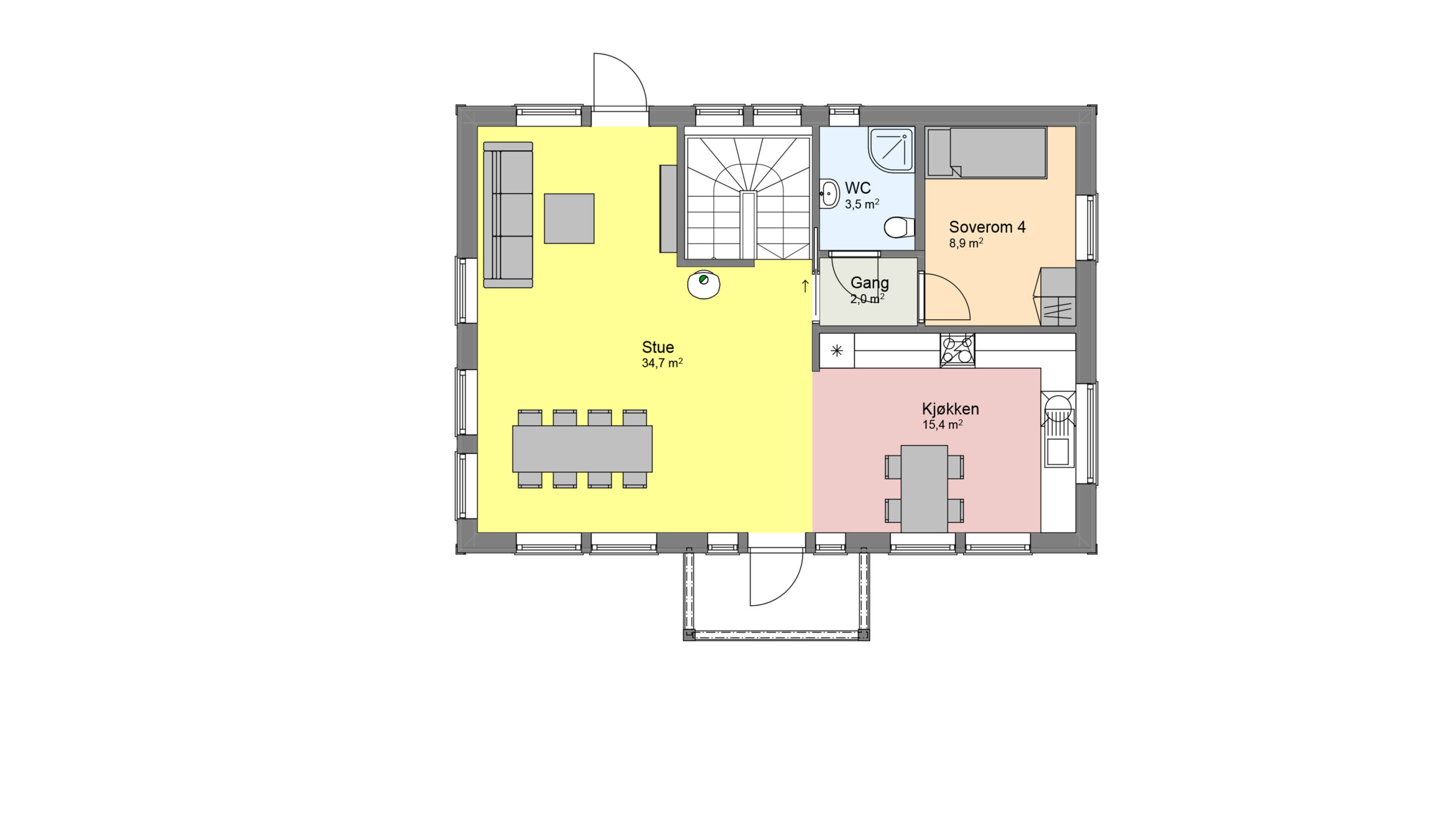 Vår husmodell Spone er et vakkert hus med to fulle etasjer som gir deg god plass selv om det har et lite fotavtrykk. Dette gir mulighet for å bygge et romslig og klassisk hus selv på mindre tomter. Spone har et herskapelig preg med sprosser på vinduene og takoverbygg over veranda og inngangsparti.